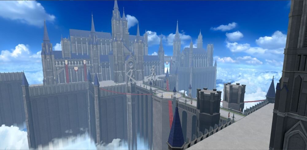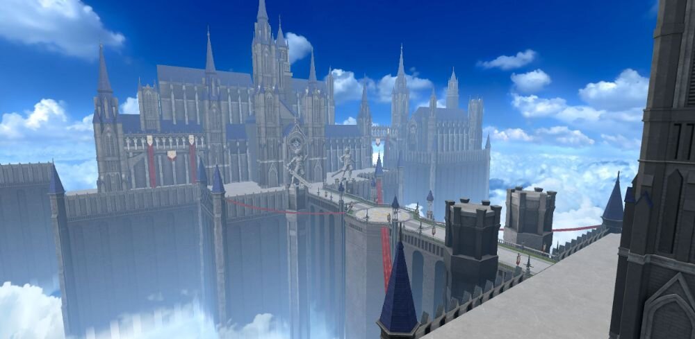ガーネットの背景はファンタジックで広大な浮遊城というコンセプト。キャラクターモーションを付ける主な舞台としては中央の広場がまず挙がるが、それ以外にも城を含めかなり広い環境として使える。後述するフォグや、遠景用の重層的な雲により、ファンタジックな天空の城の情景を演出することができる。