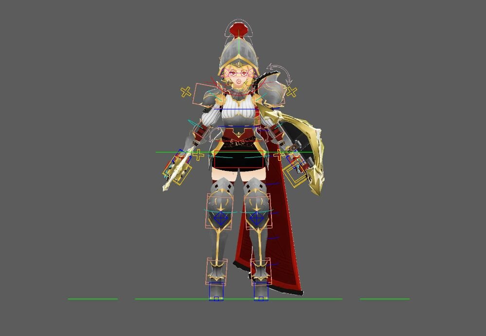 グミーに続く第4のアプリボットリグとしてリリースされた「ガーネット」は、中世ファンタジー風の甲冑に身を包んだ女性騎士。大剣・大盾を装備し、「重さを感じさせるモーション」を身につけるのにピッタリの中級者向けアセットとなっている。これまでのアセットはモーション班が制作を担当してきたが、このガーネットからはアート班・キャラクター班・背景班・エフェクト班からも力を借り、さらに充実した仕上がりとなった。
