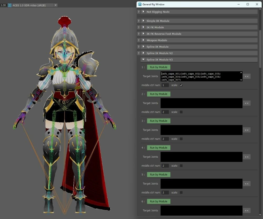 ▲[Spline IK Module V3]はFK・IKが切り替えられるスプラインIKを生成できる。ガーネットではケープのリギングに使用された