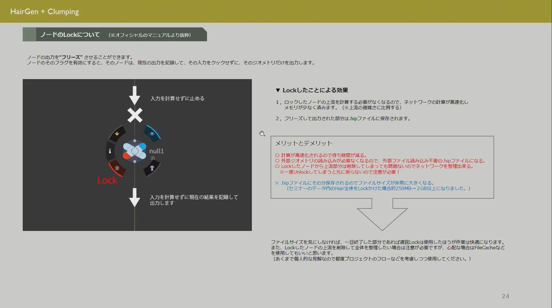 「ノードをロックすると計算がなくなるので待ち時間が短縮され、メモリ消費も少なくて済みます。ただし、ロックされたデータはファイルに一緒に保存されるため、ファイル容量が大幅に大きくなるというデメリットもあり、一長一短です」(西田氏)。