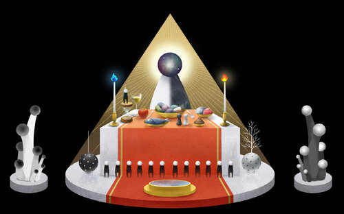 食事する謎のキャラクターと、その給仕たちの謎の行動を追う、シュールかつ前衛的なアニメーション作品。給仕たちの独特な動きが笑いを誘う。