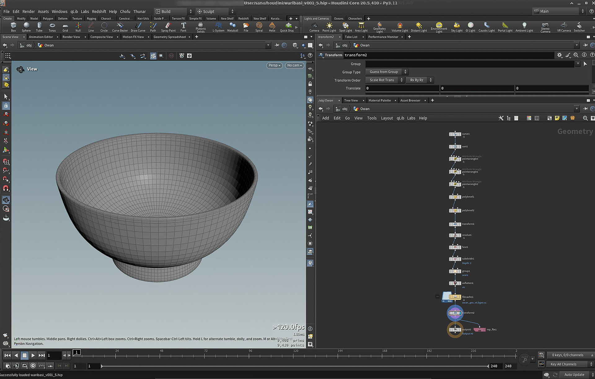 おわんや七輪などのモデルは、全てHoudiniによるプロシージャルモデリングで作成しました。
