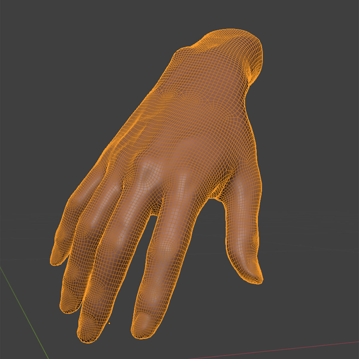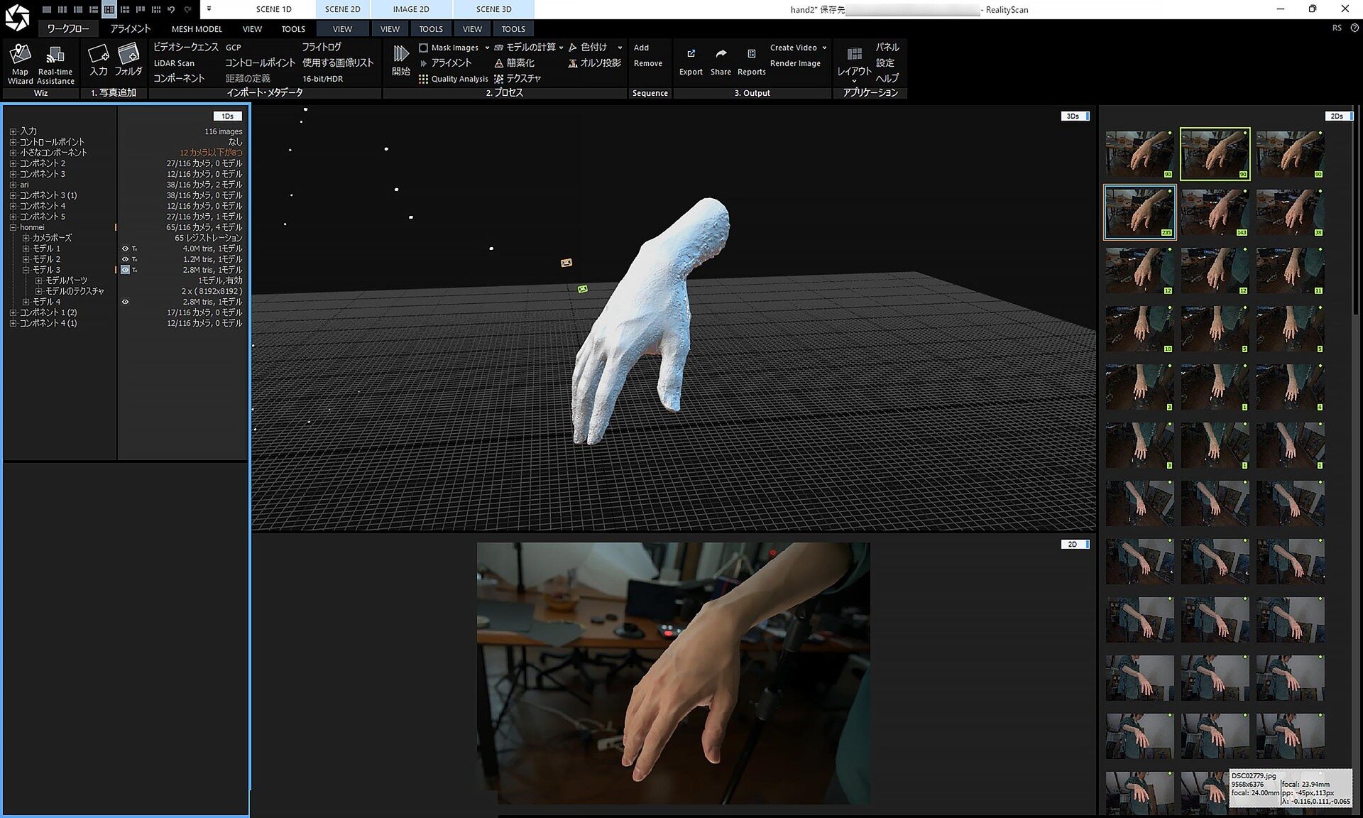 手のフォトグラメトリーでは演者に息を止めてがんばってもらってもどうしても細動があるため、フォトグラメトリーで綺麗なデータを得るのが難しいのですが、これぐらいの表現であれば問題ありませんでした。
