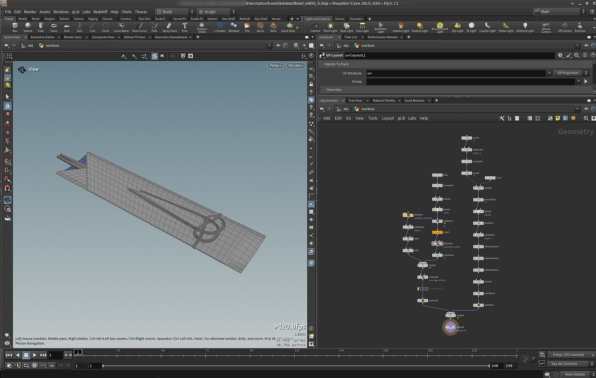 今回シーン構築を含めたメインツールをHoudiniにしました。HIPファイルを開いて、ノードをコピーするだけでデータのやりとりができるのでチーム作業がとてもスムーズでした。