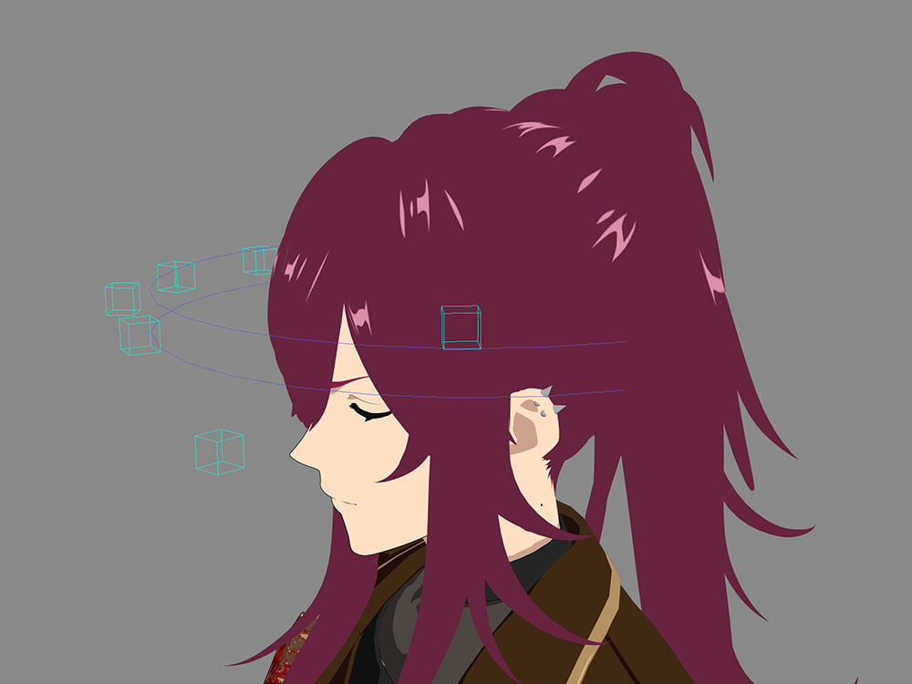 "ねじり"による髪の造形と、AE上で制御するフラットなグラデーション