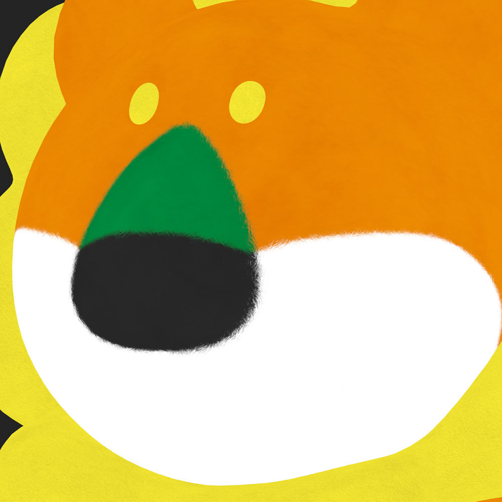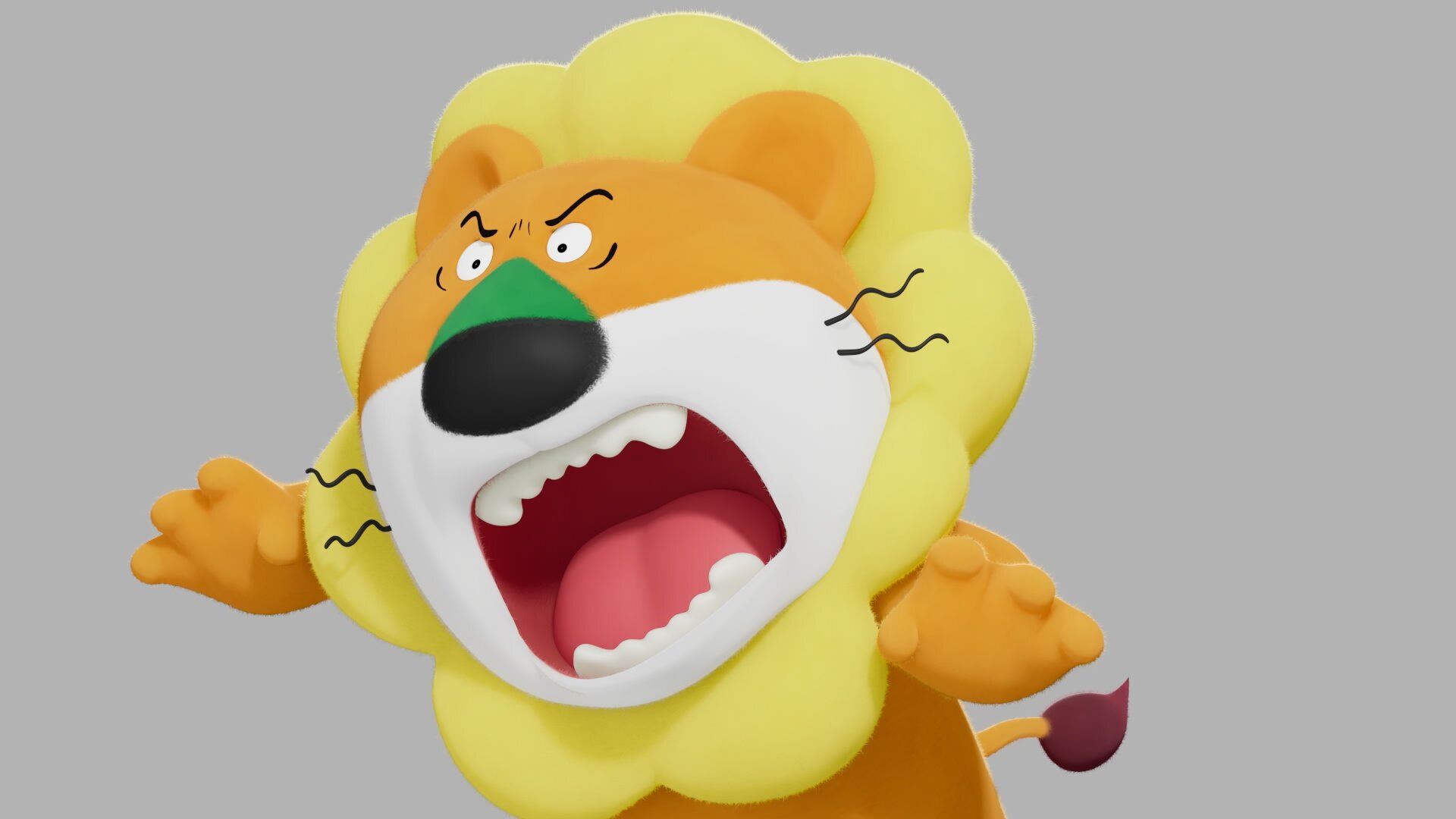▲眉毛やヒゲのラインを変形させ、らいおんくんの怒りの表情をマンガ的に強調して表現した例