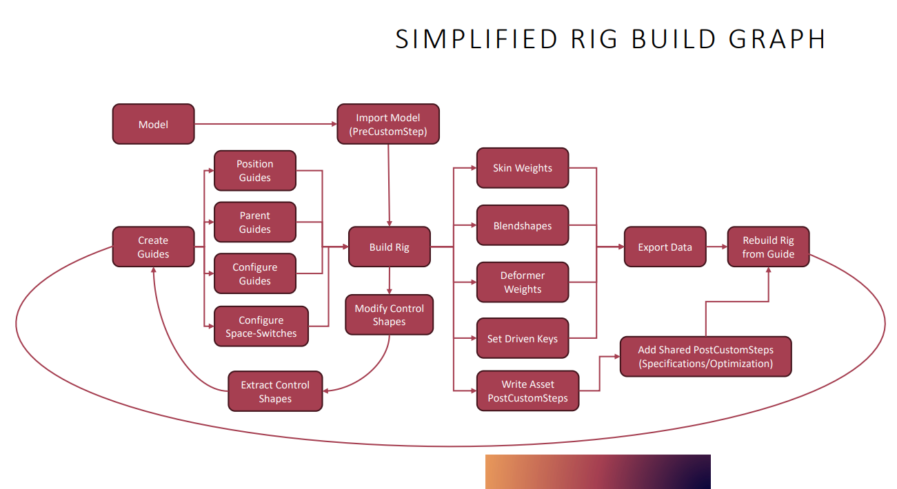 ワークフローとしては、ガイドとリグのデータをベースとして他キャラクターに転用できる方式を採用。モデラーやアニメーターからのフィードバックを迅速に反映でき、修正や再構築が容易な点が特徴だ。制作にはmGearとインハウス製のカスタムツールが活用された。