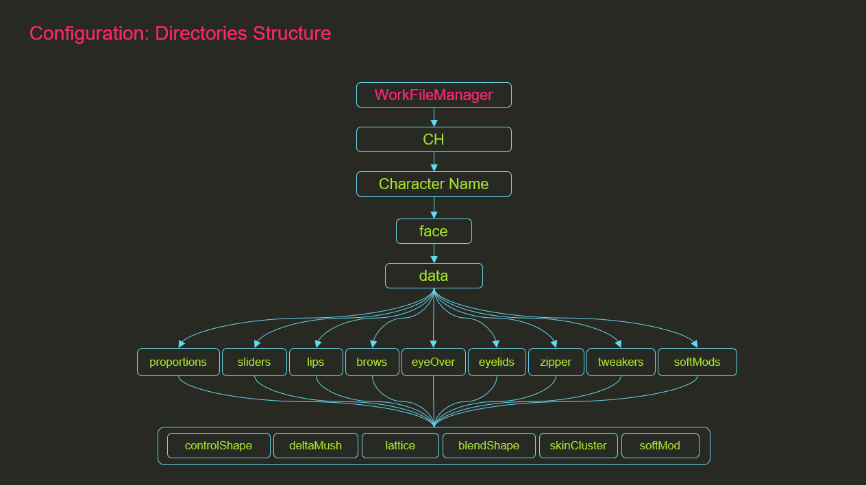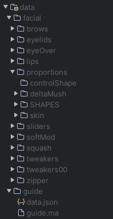 フェイシャルリグの構築にあたっては、マーザが開発した自社ツールも活用された。リギング作業の最初の段階で必要な情報をツールに入力すると、あらかじめコントロールとスキンウェイトが設定されたリグが生成される。変形データをファイル単位で扱えるため、リグの再構築や調整にも柔軟に対応できる設計となっている。