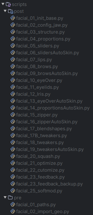 フェイシャルリグは唇や眉など顔の各パーツをレイヤーごとに分け、それぞれにジオメトリとデフォーメーションデータを管理している。これにより、複雑な表情を安定して制御することが可能となった。