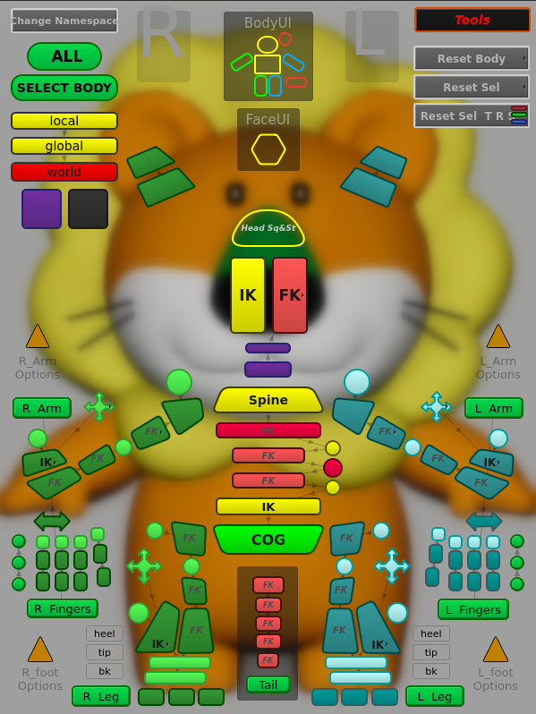 モフモフ感を表現するため、アニメーターからリグチームに要望を出し、お腹や腕などの皮膚を細かく動かせる専用のコントローラが追加された。肉の揺れなどは全て手付けで作成されており、キャラクターの動きに合わせた柔らかさがつくり込まれている。