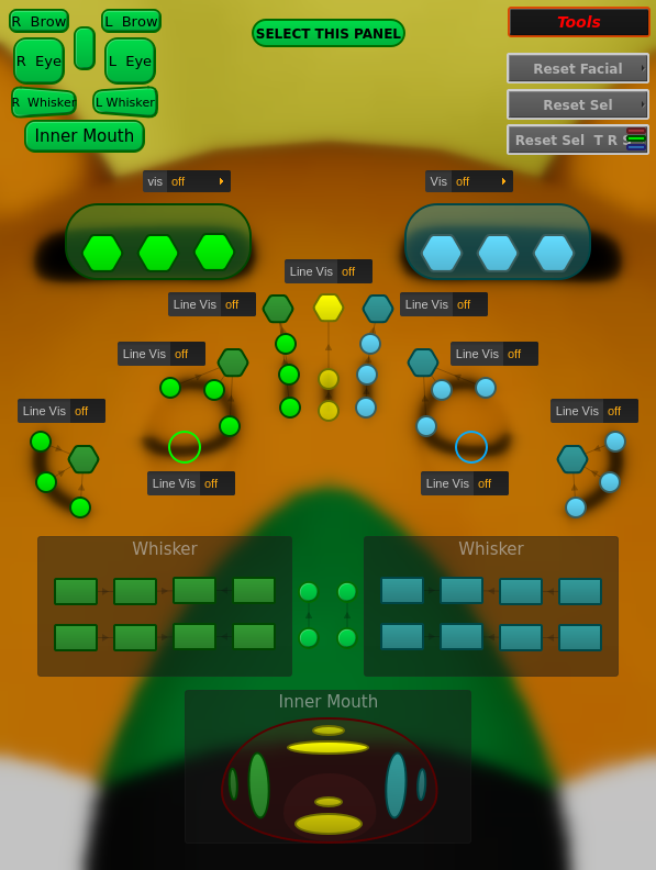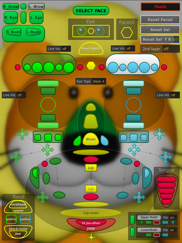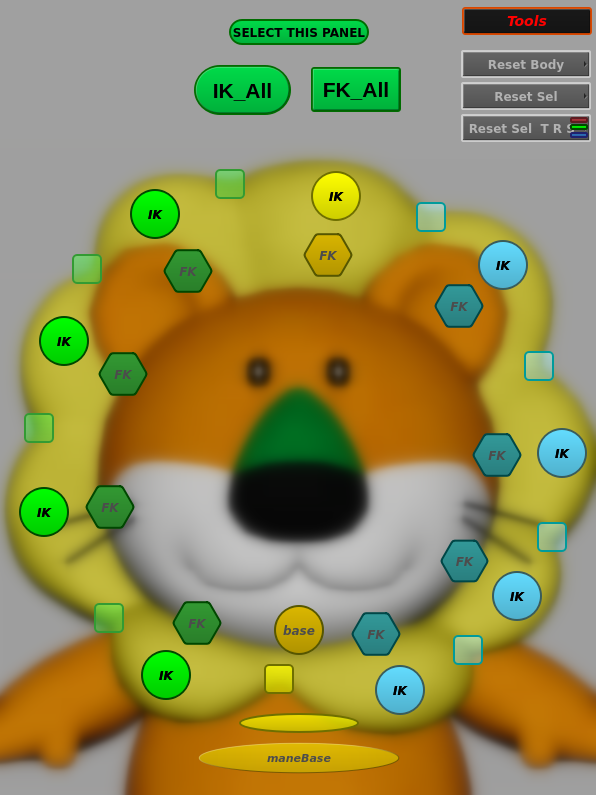 ▲らいおんくん用のソフトモッドコントロールパネル。アニメーターがメッシュを自由に変形させることでキャラクターの生き生きとした感情やインタラクション表現が可能となる