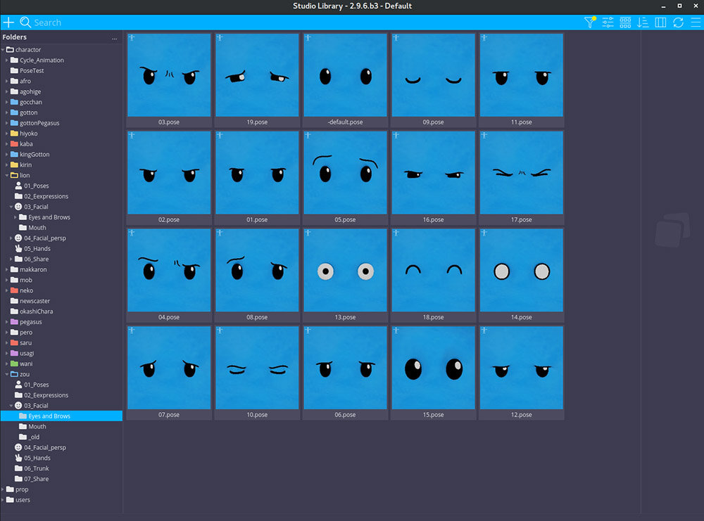 また、アニメーター側で表現したい表情が作成できるよう、リガーとアニメーターの間で何度もやり取りがなされた。まずは2Dアートで描かれた表情を基にポーズライブラリをアニメーターに作成してもらい、それを踏まえてどういった動きや機能が必要か、追加で必要な情報や綺麗なシルエットをつくるための動作の改善などを検討。リグで最も時間を費やした工程になったという。