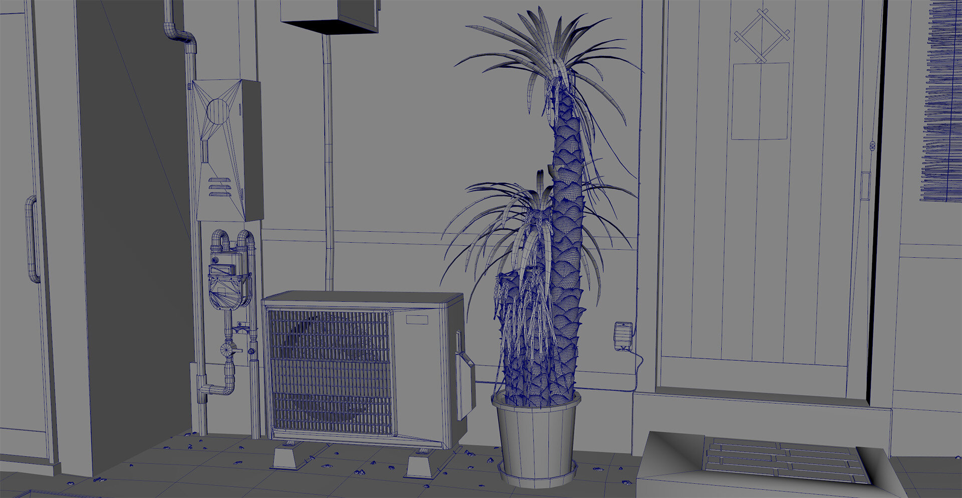 全体のクオリティを均一に保つことも重要で、ある1ヶ所だけ突出して作り込まれていたり、逆にディテールが足りなかったりするとリアリティが崩れてしまうので、常にシーン全体を俯瞰しながら確認を繰り返しました。