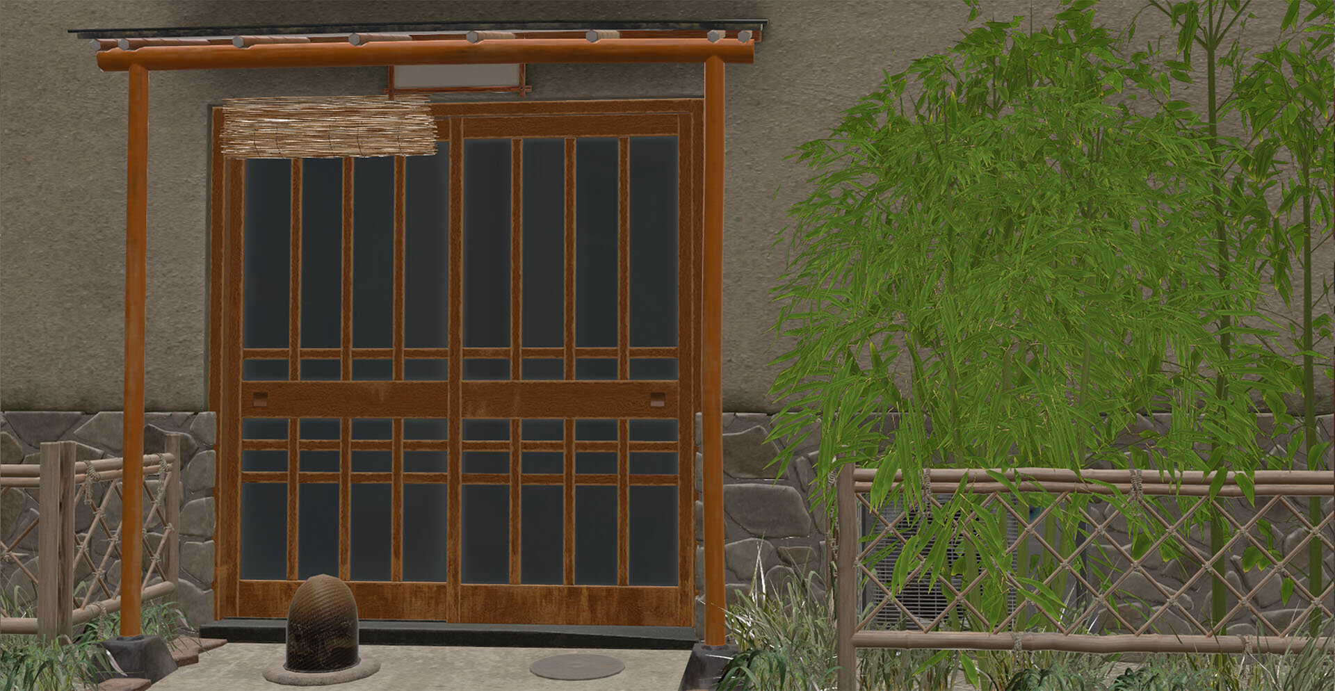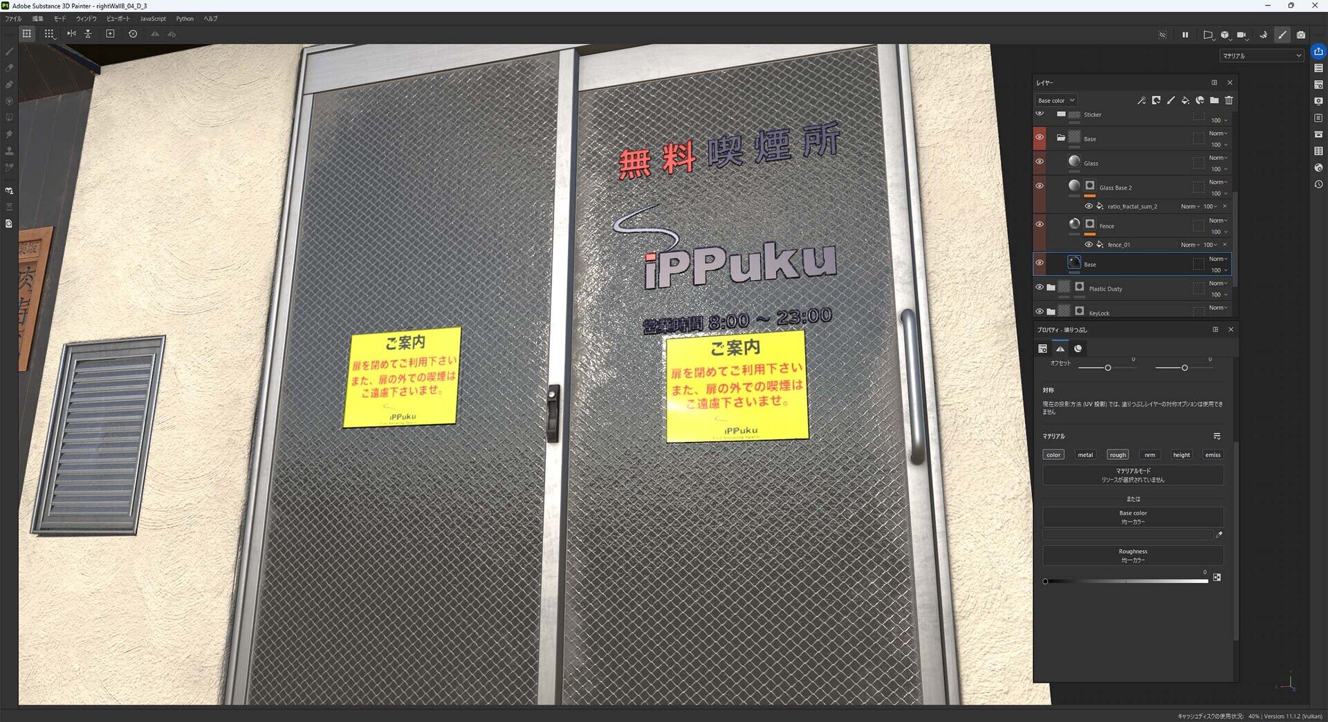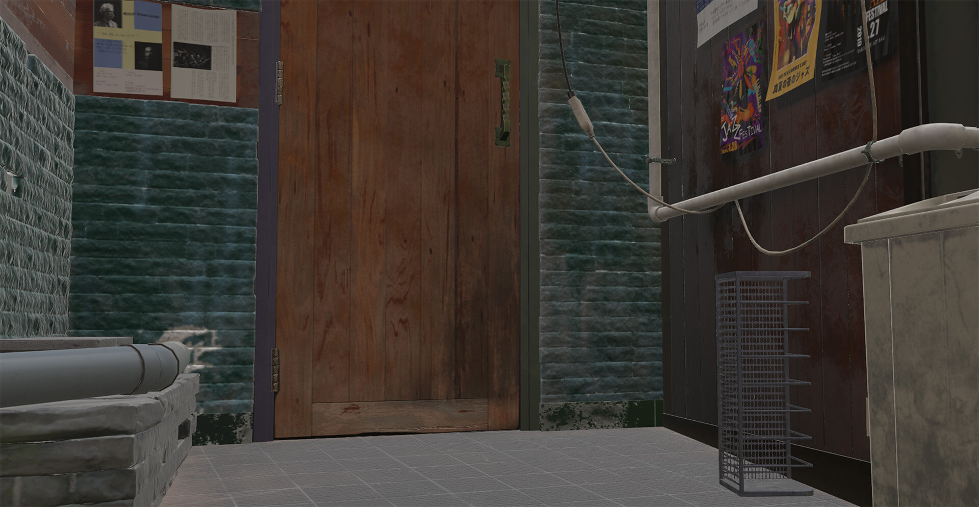 ▲ スナックの入口。まずは新品の状態のモデルを作成した上で汚し処理を加えていく -