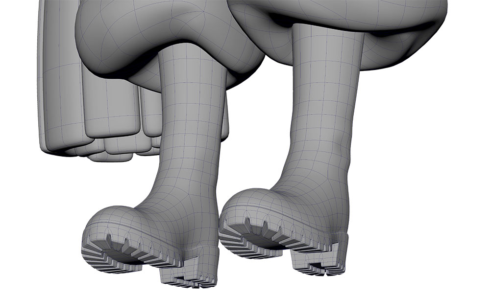 大きく映らず、揺れない部位は軽量化のためテクスチャに任せ、カメラで大きく抜かれる顔まわりや、揺れる部位はモデルでつくり込む判断が徹底されている。