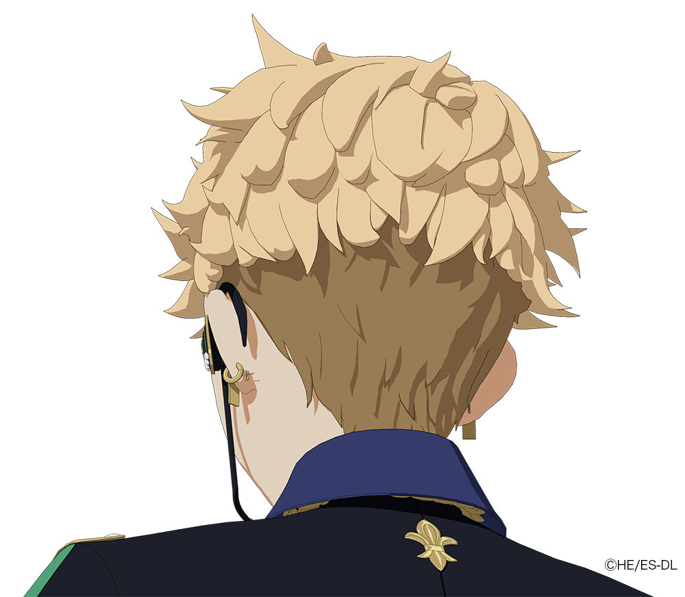 本衣装では右肩から首にかけて、通常・ねじり・三つ編みという3種の異なる紐を配置。紐は全てモデルで表現され、背面の結び目やエポレット下の取り付け部分まで省略せずにつくり込まれている。
