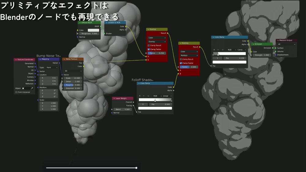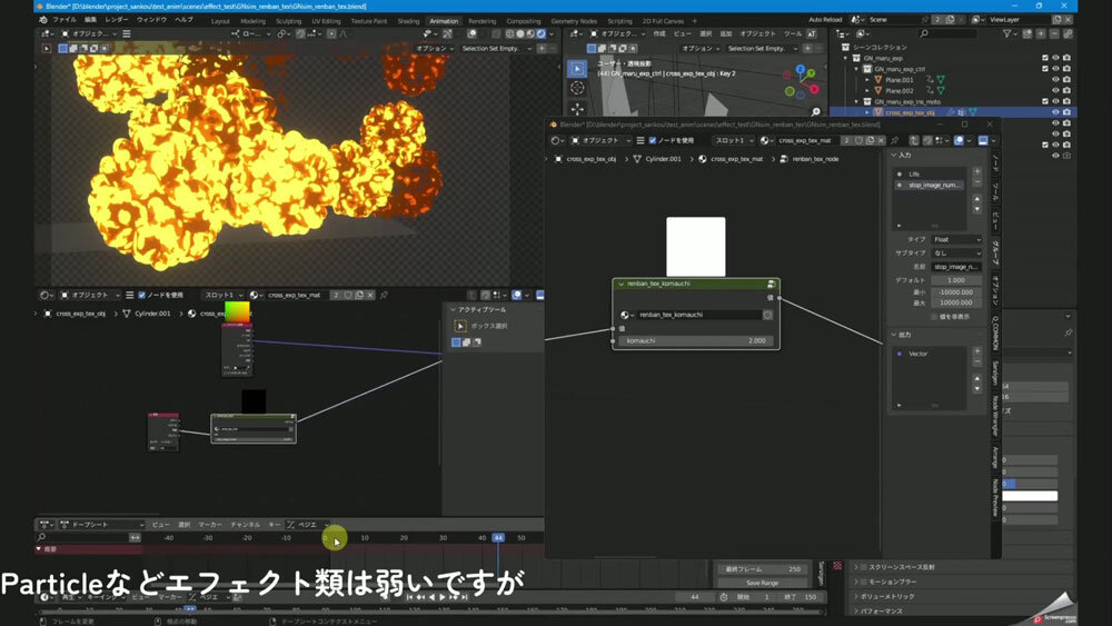 3ds Max時代に使っていたアプローチも、BlenderでAnimation Nodesなどを活用することで再現可能で、現状では工夫次第で対応できている状況だ。そのため、今後もエフェクトの多いメカ作品が控えているが「対応は可能だ」と見通しを示す。