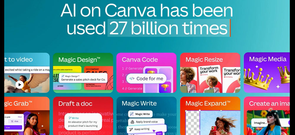 Canvaは、ワークフローの段階に達している。というのも、同アプリはユーザーが実行したいタスクに応じて、100種類以上のなかから最適なAI機能を提供することで、グラフィックコンテンツ制作のワークフロー全体をサポートしているからだ。こうしたAI機能群は、「Canva AI」と呼ばれる。