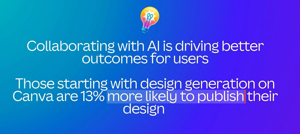 コラッツァ氏によると、CanvaのAI機能を使うと、制作物を同僚と共有したり、Web上に公開したりする可能性が13%向上する、とのこと。同アプリにおけるAI機能は、ユーザーのモチベーションに良い影響を与えているのだ。