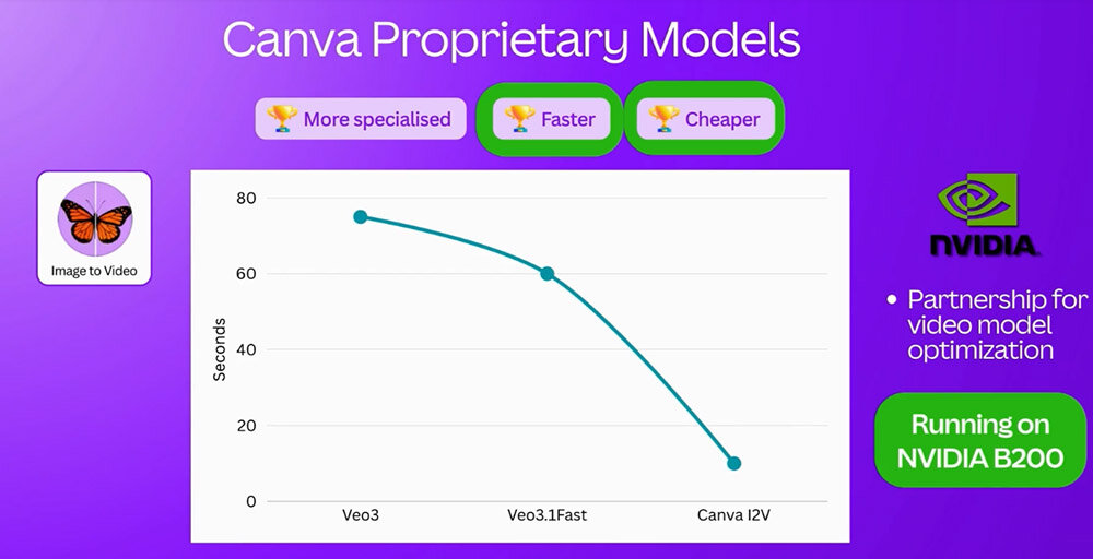 コラッツァ氏は、最近実装したAI機能にも言及した。画像を入力すると動画を出力する「Image to Video」機能は、NVIDIAとの共同研究から誕生した。NVIDIA DGX B200を活用する同機能が要する動画生成時間は、1分を要するGoogleの動画生成AI「Veo 3.1 Fast」に比べて10秒と驚異的な速さを実現したのだった。