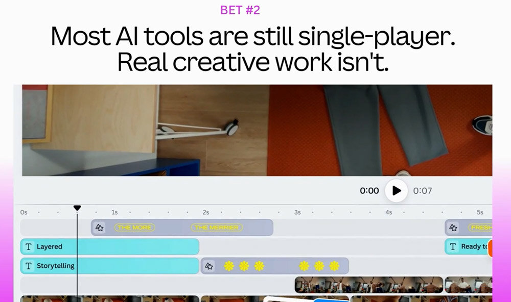 コラッツァ氏は、Canvaの今後の進化についても話した。同アプリは様々なAI機能を実装してきたが、それらはいずれも1人のユーザーが使うことを前提とされてきた。今後は、あらゆるAI機能を複数のユーザーが使えるマルチユーザー仕様に移行させる予定だ。