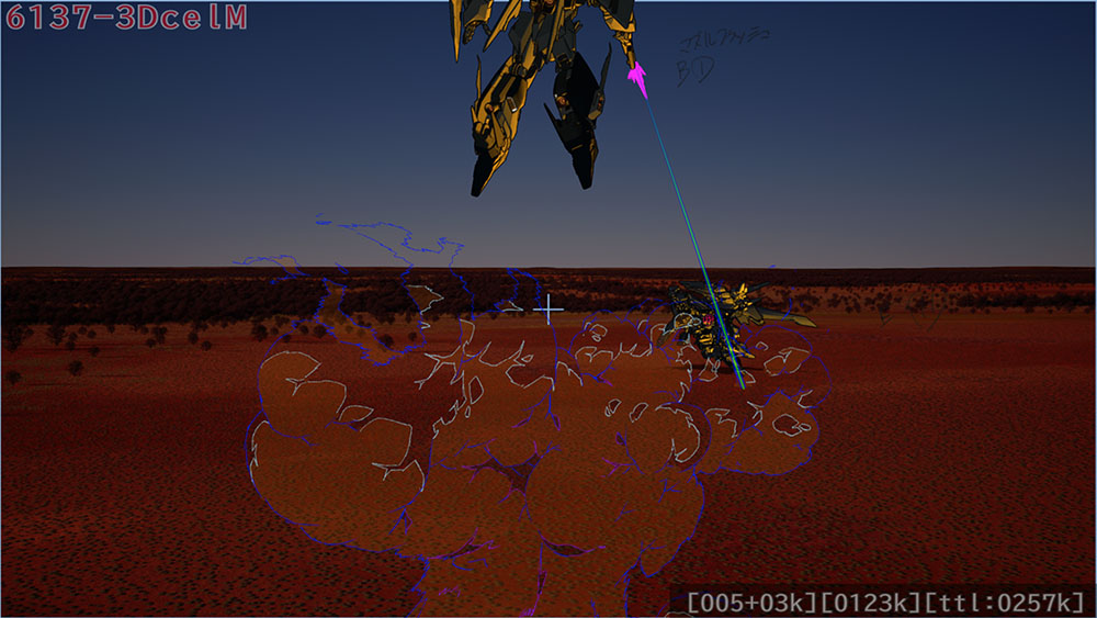 CGW:初期テイクと完成テイクを比べると、ビーム・ライフルの打ち込み回数が全然ちがいますね。