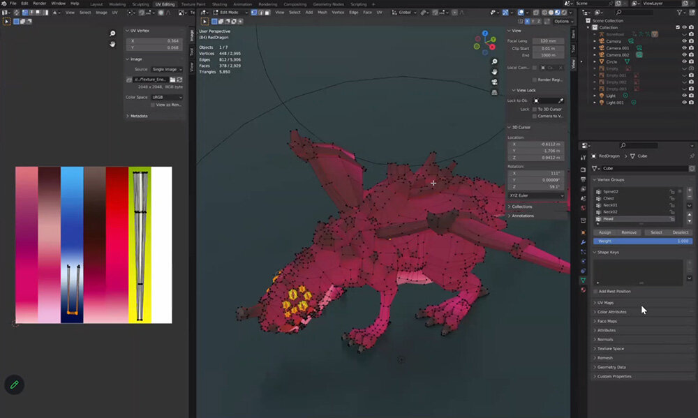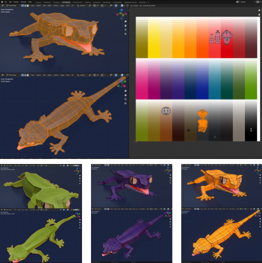 UVをずらすだけでトカゲの色を変えて、バリエーションを作成するテクニックも紹介していただきました。