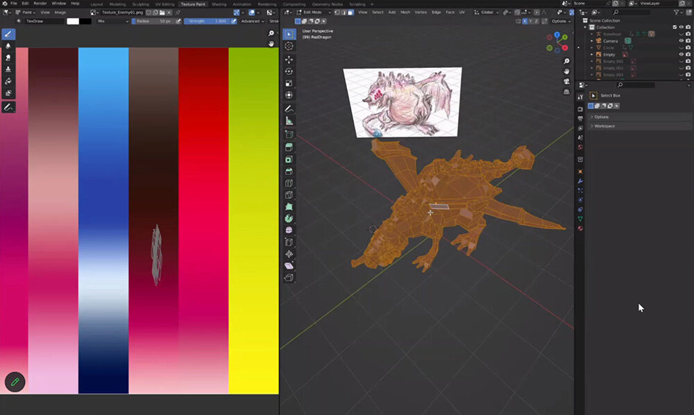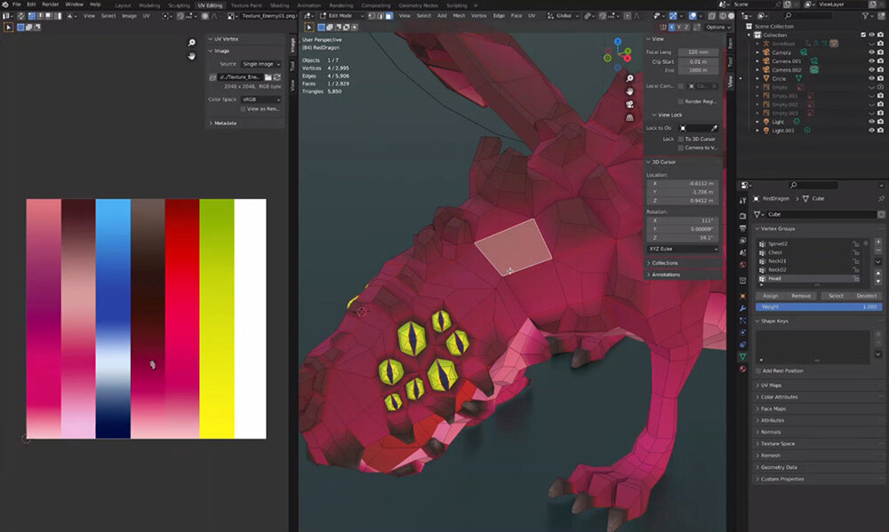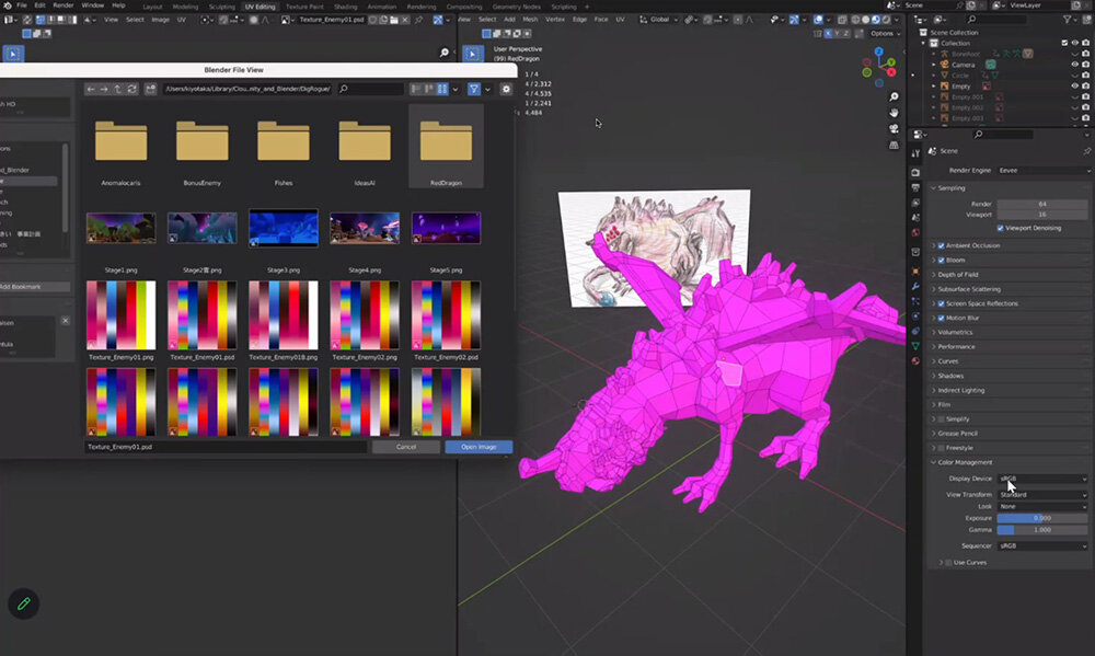 きよたこ:一切ないです。 Photoshopを開くのは最初に色見本(パレット)をつくる時だけですね。あとはBlenderの中でUVを「赤色のマス」や「青色のマス」に畳んで置いていくだけ。パズルみたいな感覚ですよ。