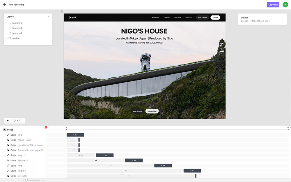 他のツールでは制限が多かったり、学習ハードルが高かったりして実現できなかったリッチな表現が、ProtoPieでは直感的に、かつスピーディに試せる。特にタイムライン機能は、After Effectsのような感覚でアニメーションを制御でき、表現の幅を広げてくれるという。