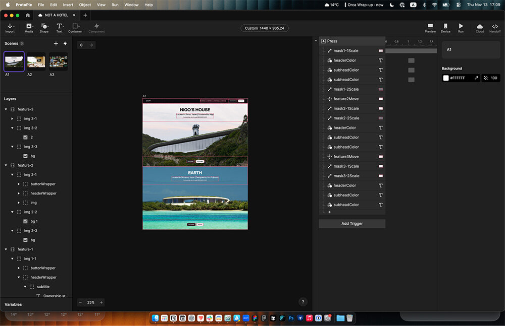 ProtoPieの導入は、NOT A HOTELプロジェクトのプロセスに具体的にどのような変革をもたらしたのだろうか。二日一氏のワークフローは、FigmaとProtoPieの強みを活かしたものだ。まずFigmaでUIデザインを作成し、それをProtoPieのFigmaプラグインを使ってインポートする。「FigmaからProtoPieにコピペできる。これは非常に大きいです」と二日一氏は強調する。