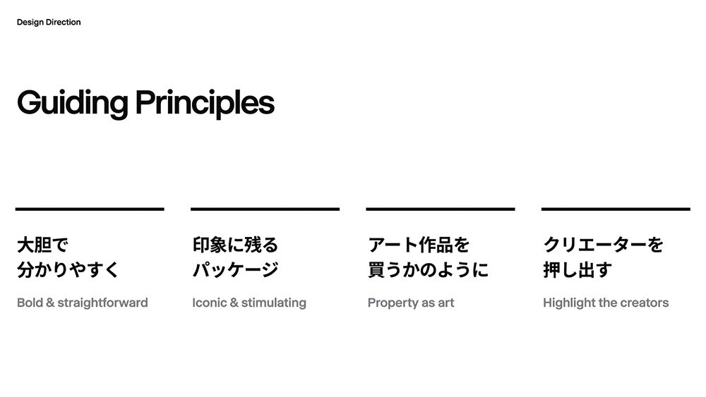 こうして固まったデザイン原則は、「大胆でわかりやすく、印象に残るパッケージ」で「アート作品を買うかのように」、そして「クリエイターを押し出す」ことだ。
