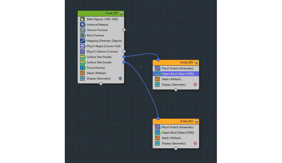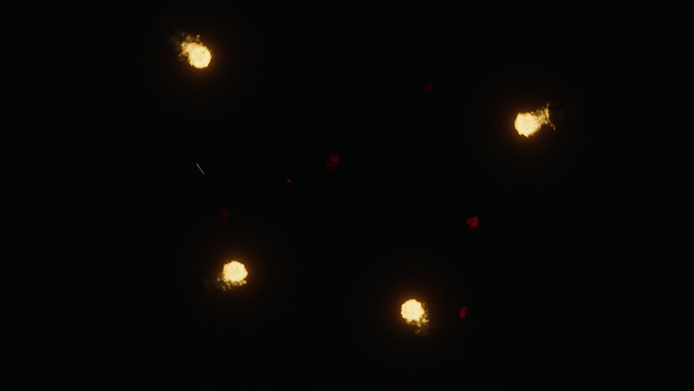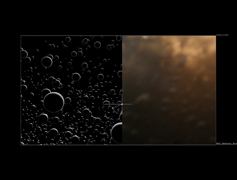 役者が池に落ちた後は、水中にある別カメラにシームレスに切り替えられている。この水中で発生する泡はNukeのパーティクルシステムで作成されたもので、この仕上がりが一連のシーンのクオリティに直結したという。