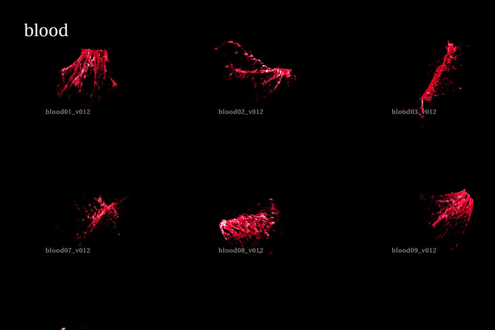 時間経過に応じて血や足跡が増えていく地面の汚しは、全てエフェクトによるもの。汚れのない実写プレートに対して、まず3Dスキャンのデータを利用してトラッキングを行い、地面のパースに合わせて汚し素材を合成していく。汚し用の基となるシーンデータは大阪チームで作成し、東西の各ショット担当に共有された。