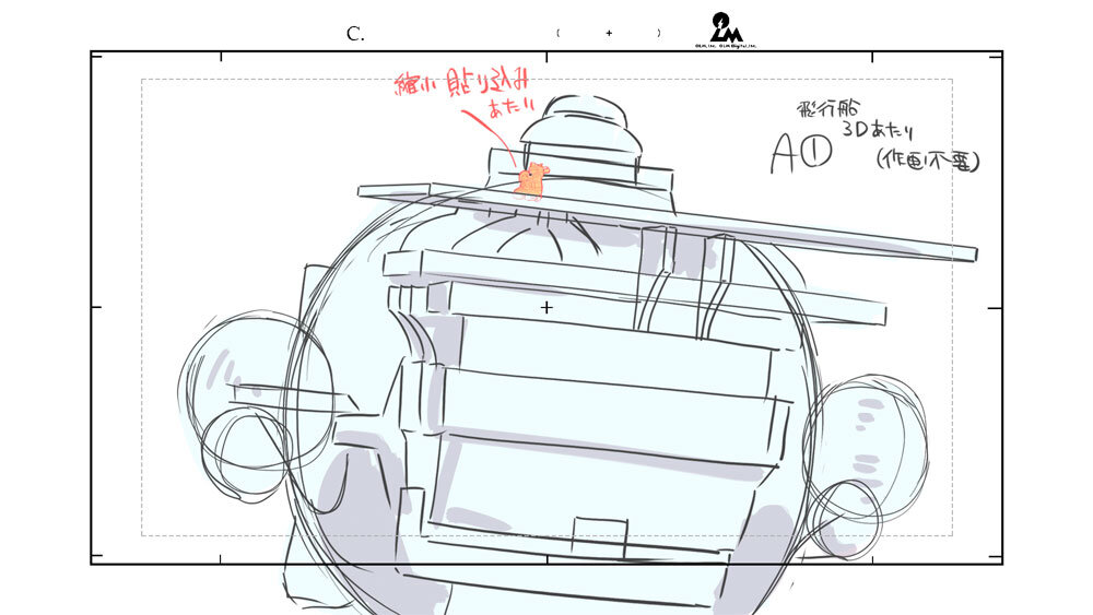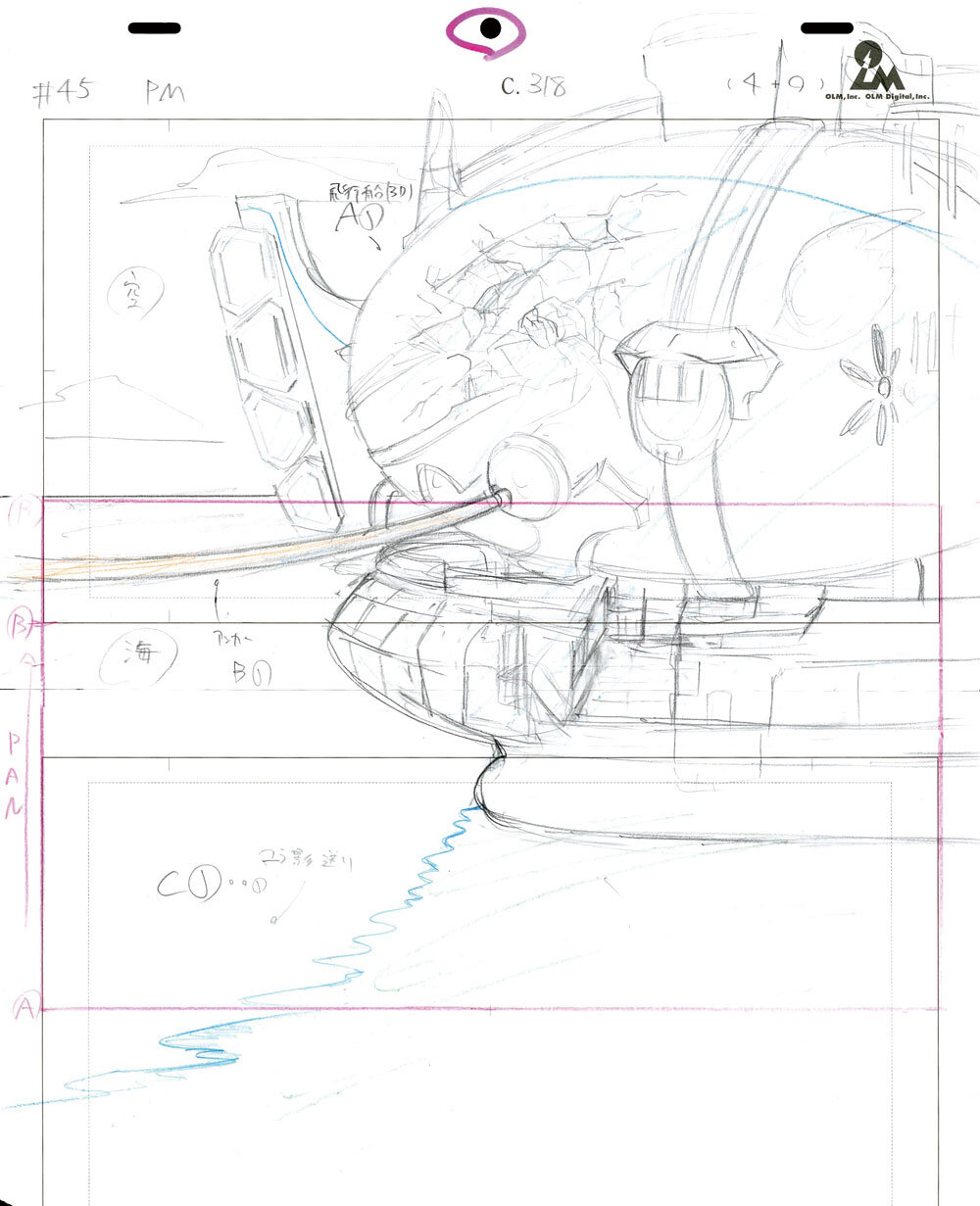 ブレイブアサギ号が登場するカットでは、作画負担を軽減するために3Dレイアウトが活用されている。3Dレイアウトの使用は2つのパターンが想定されており、作画キャラクターが3Dアセットに接触するカットは3D先行で、そうでない場合は、作画先行のレイアウトに3Dモデルを合わせるかたちで作成。どちらの場合も画コンテの意図を崩さないことを最優先にレイアウトが組まれているという。