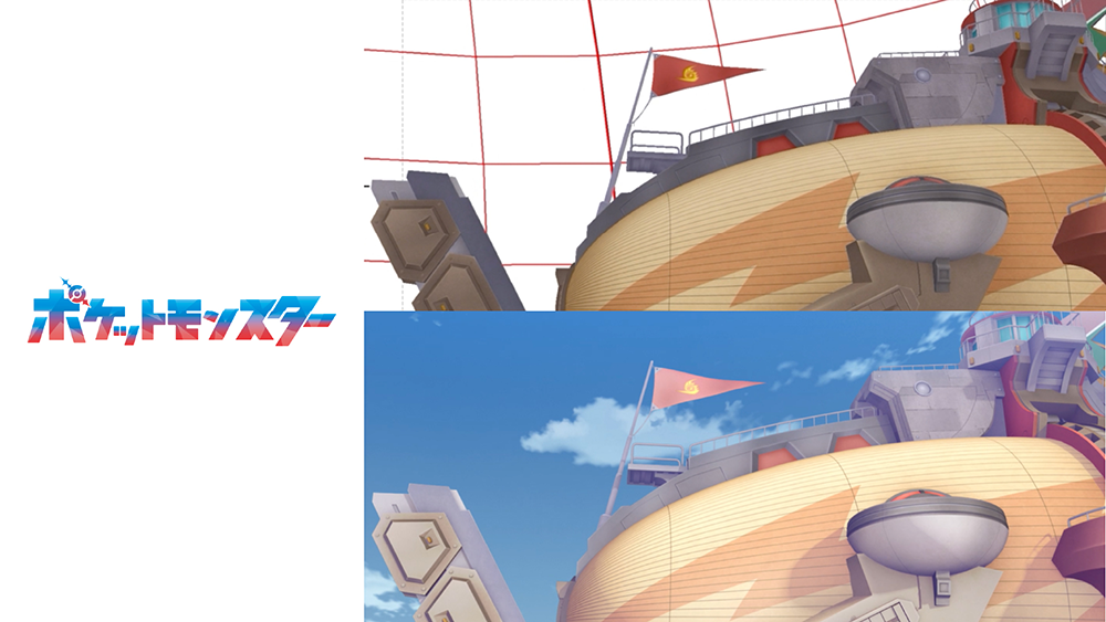 今回は、テレビアニメ『ポケットモンスター』(2023~)に登場する飛行船「ブレイブアサギ号」のメイキングと、3D背景の使用に伴って必要となった3Dレイアウトの制作プロセスについて、全3回にわたり紹介していきたい。