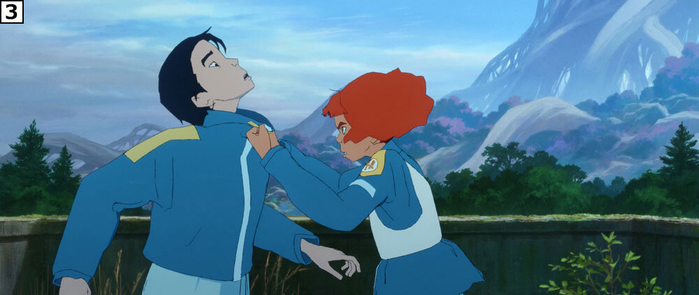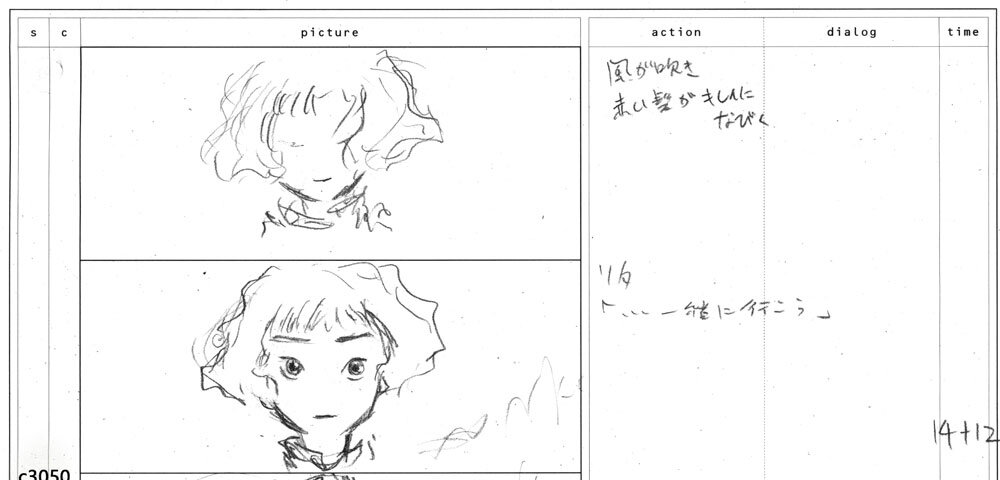 「髪のなびきとリタの表情がとても美しく印象的なカットです。最初にしっかりと3Dアニメーションを詰めて、そこに作画監督からの修正参考が入り、その修正に合わせて再度3Dアニメーターが調整を入れた後、さらにレタッチを加味して仕上がったカットです。正に総力戦で最高のカットにしようと奮闘しました。リタの良い表情をぜひ劇場でご覧ください」(秋本監督)。