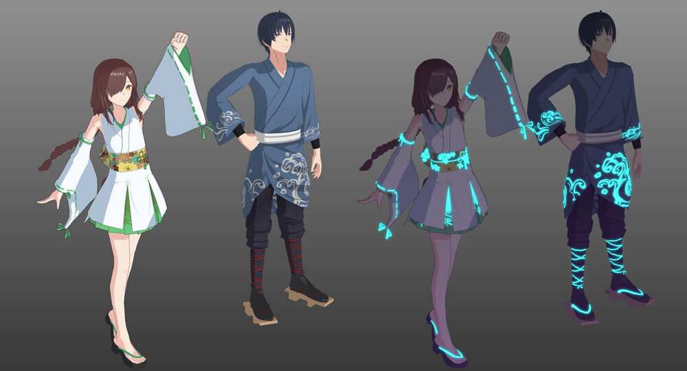 前述のVRoid Studioベースのモブキャラクターとは別に作成された、ツクヨミ内のモブキャラクター。こちらもデザインからスティミュラスイメージが担当している。なるべく多くの種類のモブを登場させられるように男性8種、女性3種、それぞれカラーバリーションを3種類用意し、髪型も8種類ずつ各5色が用意された。