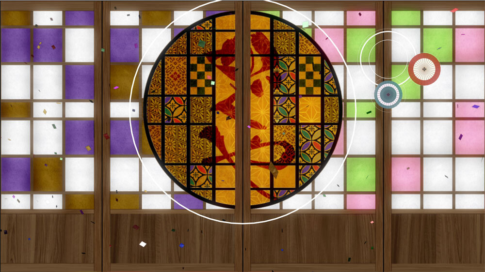 ▲実際の登場カット。和柄が車体にマッピングされていたり、華やかな煙になっていたりと、和風ポップなデザインが強調されている。また、車輪周辺がかなりアップになるため、主連棒や連結棒も機構に合った挙動になるように丁寧にリグが組まれている