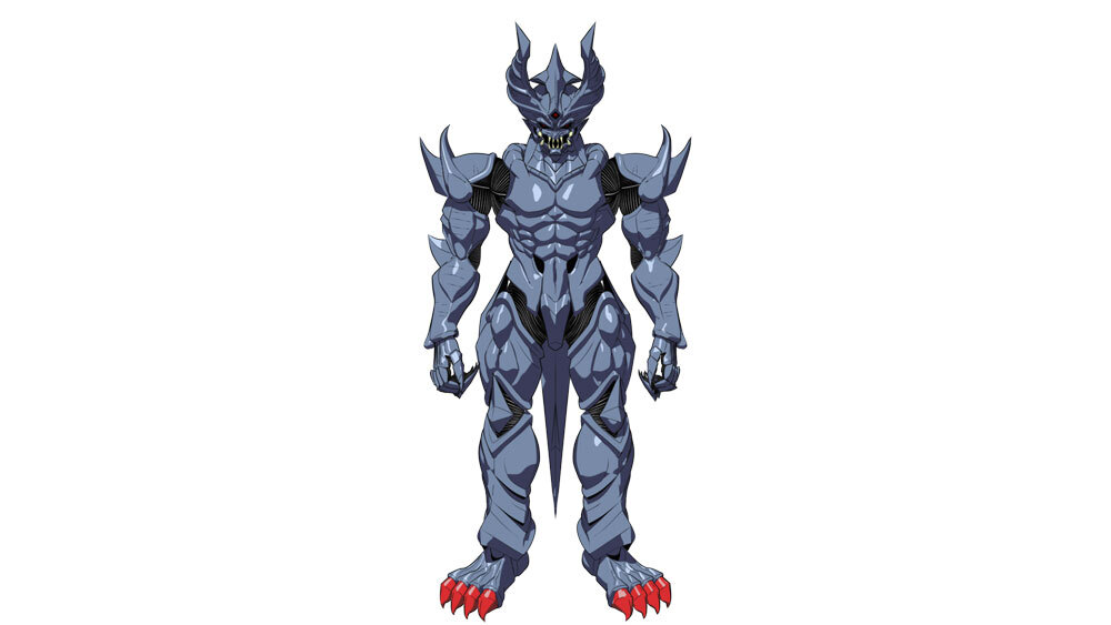 第5話に登場する織田龍成が怪物化した状態の3Dモデル。ラフ状態の設定画からモデリングをスタートしたキャラクターなので、設定画に描かれたキャラクターにある線の取捨選択を意識しながらシルエットのバランスをとっていったという。