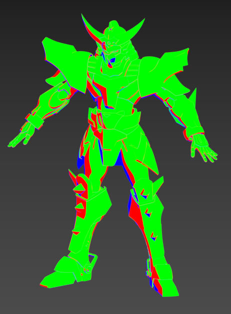サムライトルーパーで、主人公である灼熱のガイ、こと凱の3Dモデル。設定画をベースに作画のイメージを崩さずに、ポリゴン数を極力整理し、レンダリング時間やリグによる制御がしやすい構造にされており、ほかのサムライトルーパー4体へのモデル流用も考慮されている。ルックについては、本作はアウトラインが太い特徴的な作画ルックであるため、3Dモデルのルックも作画に合わせている。