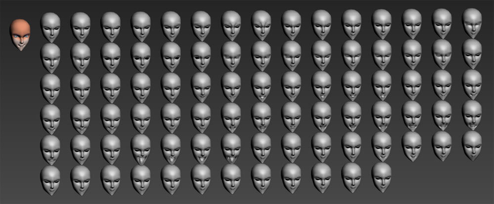 フェイシャルはスケジュールとコストの関係から、ボーンベースのフェイシャルリグは採用せず、約80種類におよぶモーフターゲットによって表情がコントロールされている。