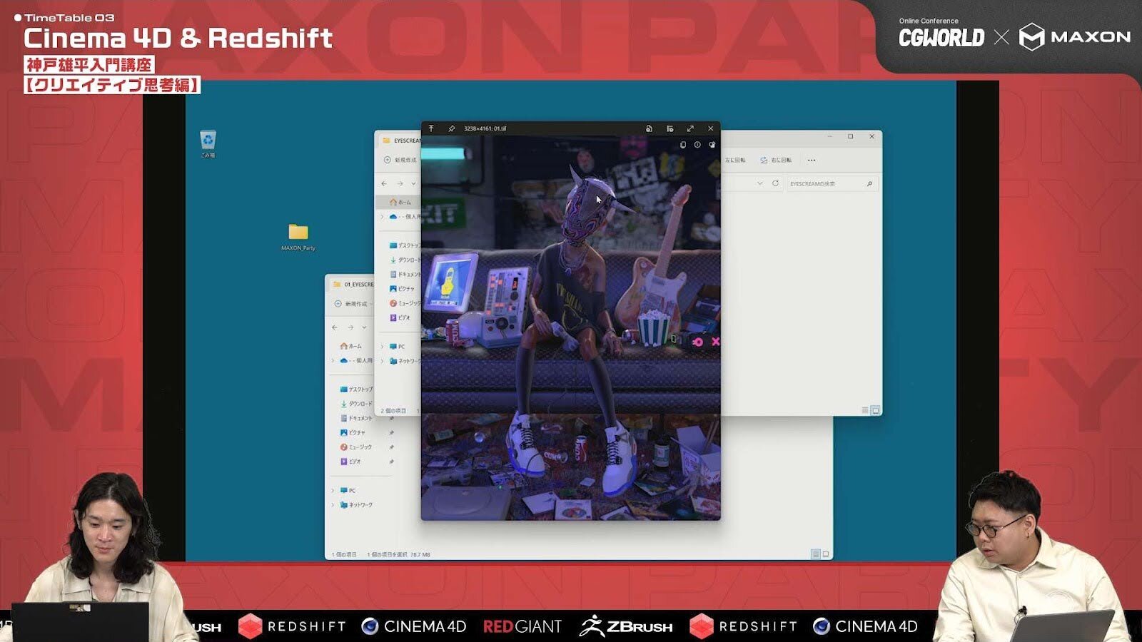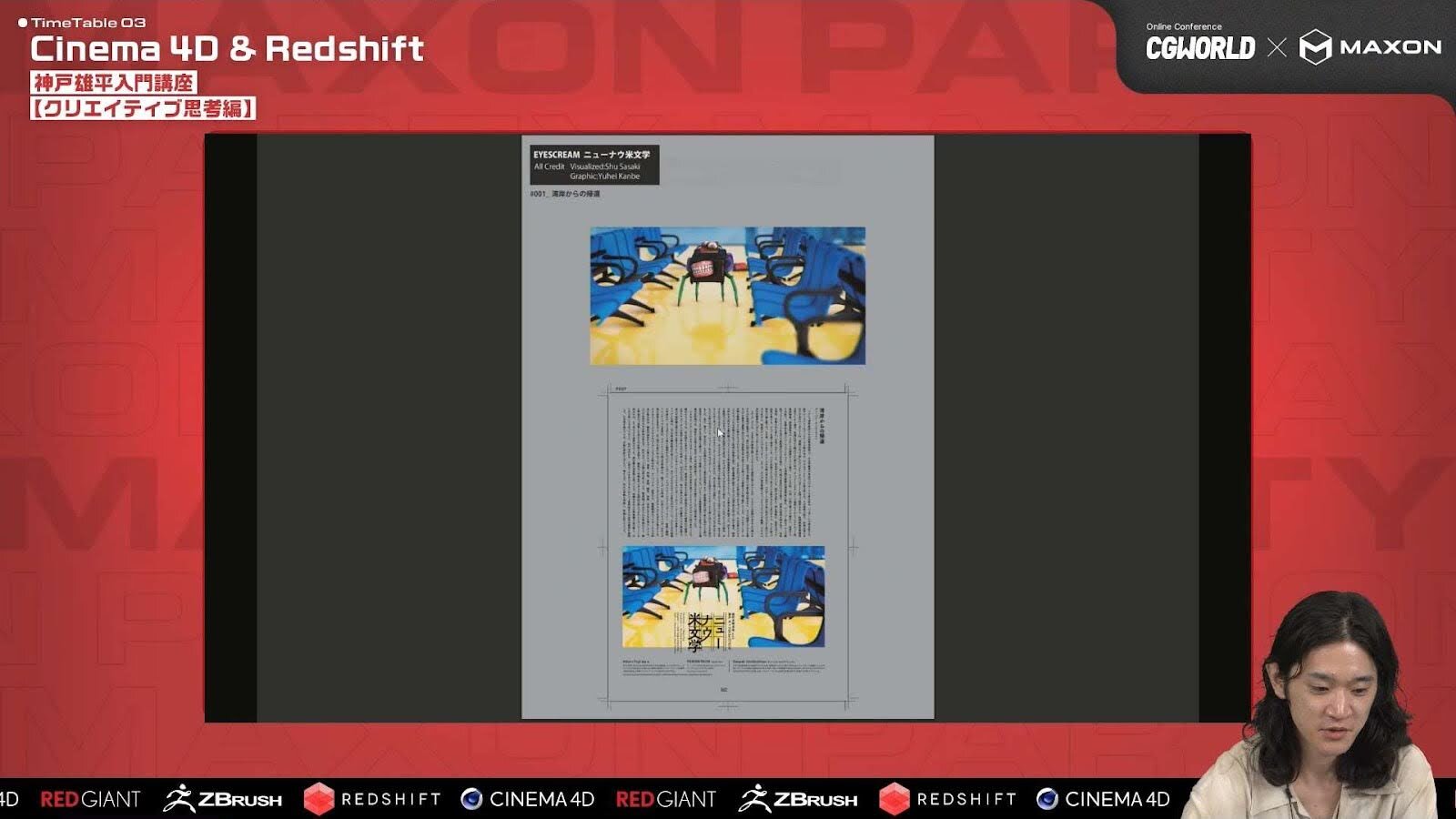 ZBrush、Cinema 4D、Redshiftなどクリエイターから熱い支持を得るMaxon社製品に限定したオンラインイベント「MAXON PARTY '25春」が5月28日(水)に開催された。ここでは、同イベントの人気セッションのひとつ、「神戸雄平入門講座【クリエイティブ思考編】」の様子をレポートする。スピーカーはPERIMETRON・神戸雄平氏と、カーキの伊藤太一氏。どちらもCinema 4Dのヘビーユーザーだ。