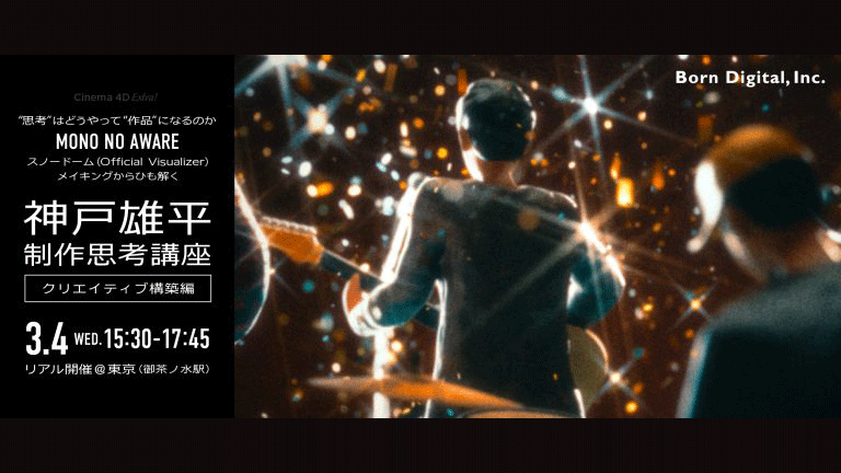 第2弾となる今回は、神戸氏が手がけたプロジェクト 「MONO NO AWARE – スノードーム (Official Visualizer)」 を題材に、アイデアの着想から完成に至るまでの“思考を形にする”プロセスを、より実践的に紐解いていきます。