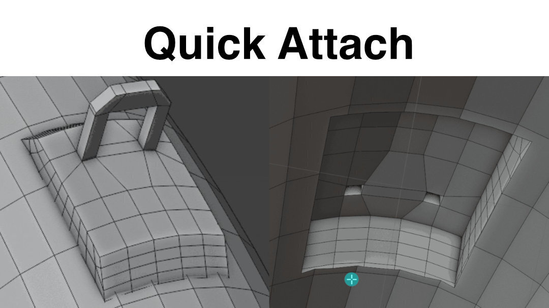 ●Kushiro氏がBlenderアドオン「Quick Attach」をリリース! 曲面を含む選択面に別のメッシュを接続し、内部面を自動削除、接続後の調整にも対応