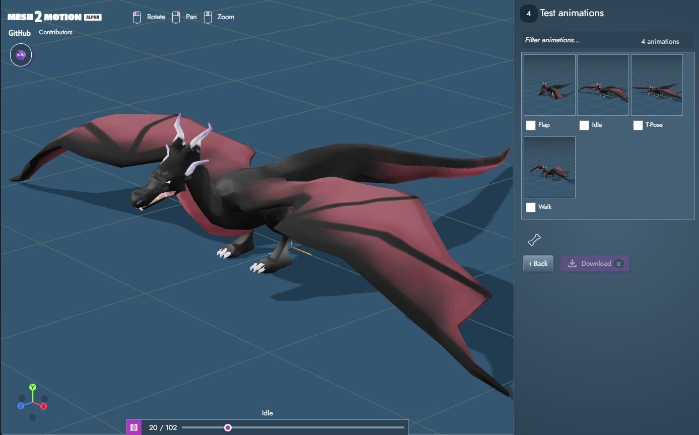 Scott Petrovic氏は9月24日(水)、オープンソース(MITライセンス)の自動リギング&アニメーションツール「Mesh2Motion」アルファ版Update 5をGitHubでリリースした。新しくドラゴン用のリグが追加されたほか、UX改善、glTFインポート品質の改善などの更新が施されている。