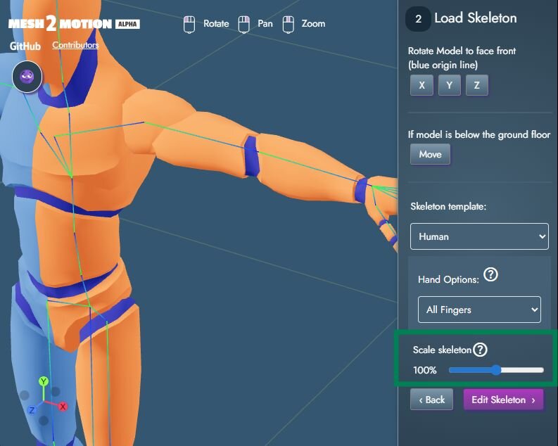 Update 5ではまた、リギング作業改善のため、スケルトンのスケールとAポーズ補正を行う「Scale Skeleton」スライダも追加されている。