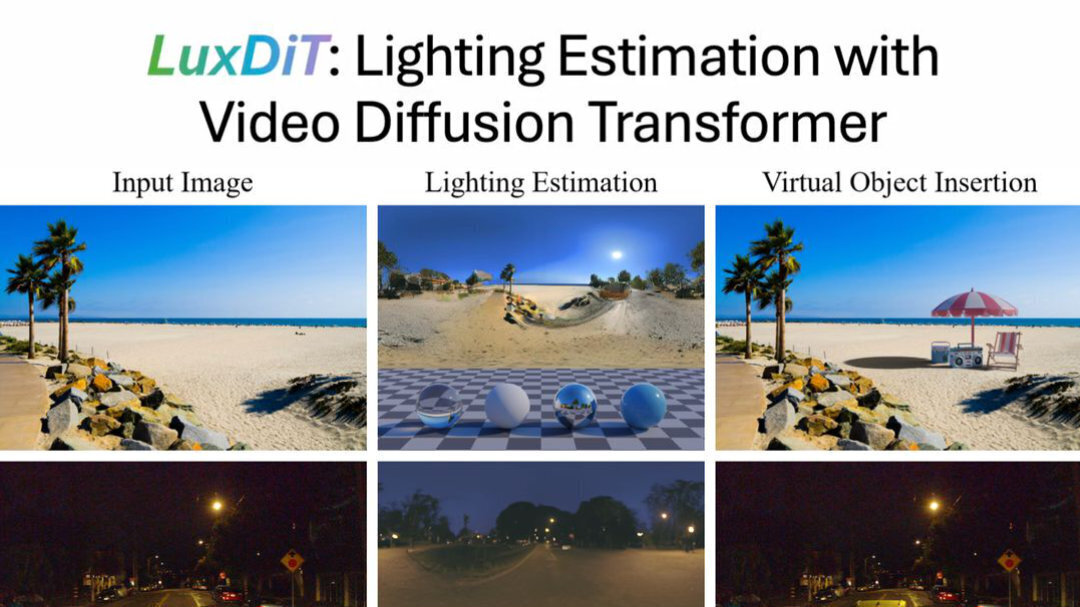 NVIDIA、トロント大学、ベクター人工知能研究所からなる研究チームが、1枚の画像・動画からその場所のリアルなライティングを推定し、高精度なHDR環境マップを生成できるDiT(Diffusion Transformer、拡散トランスフォーマー)、「LuxDiT」を発表。コードは近日公開される予定。