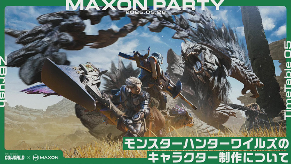 CGWORLD主催のオンラインイベント「MAXON PARTY ’25春」のセッション「モンスターハンターワイルズのキャラクター制作について」セッションレポート。株式会社カプコンがZBrushの活用を軸に『モンスターハンターワイルズ』制作の裏側を紹介している。