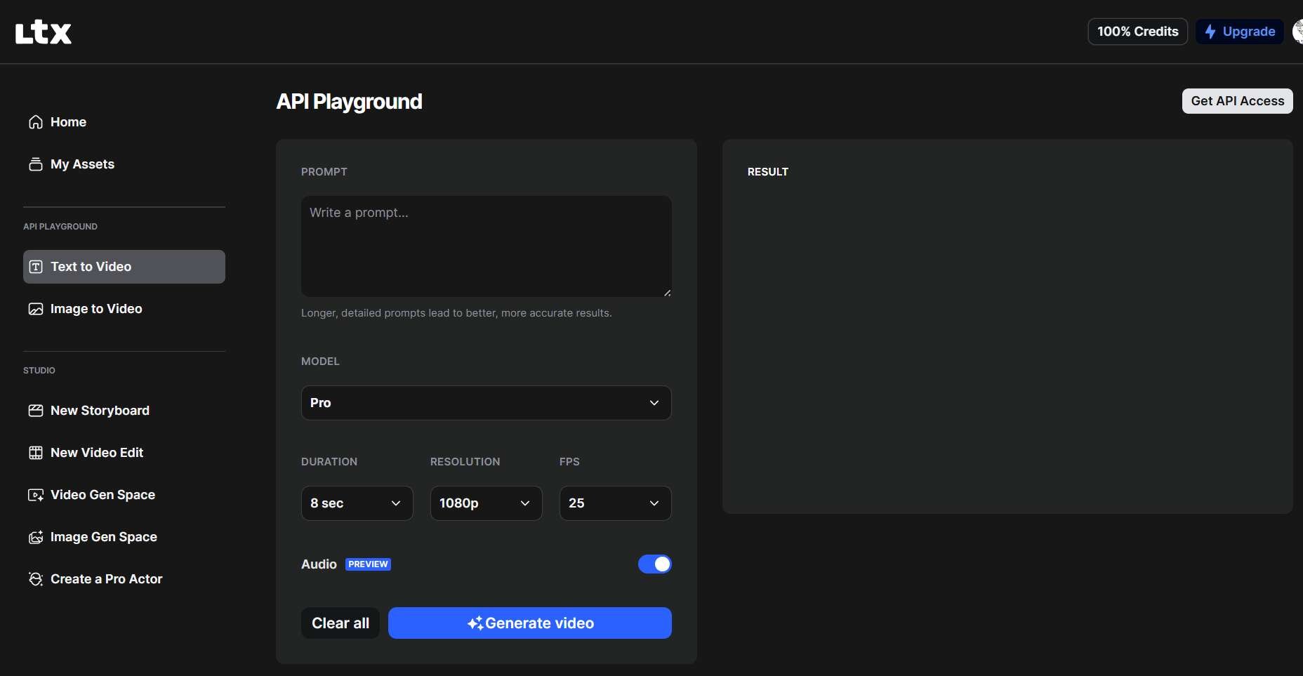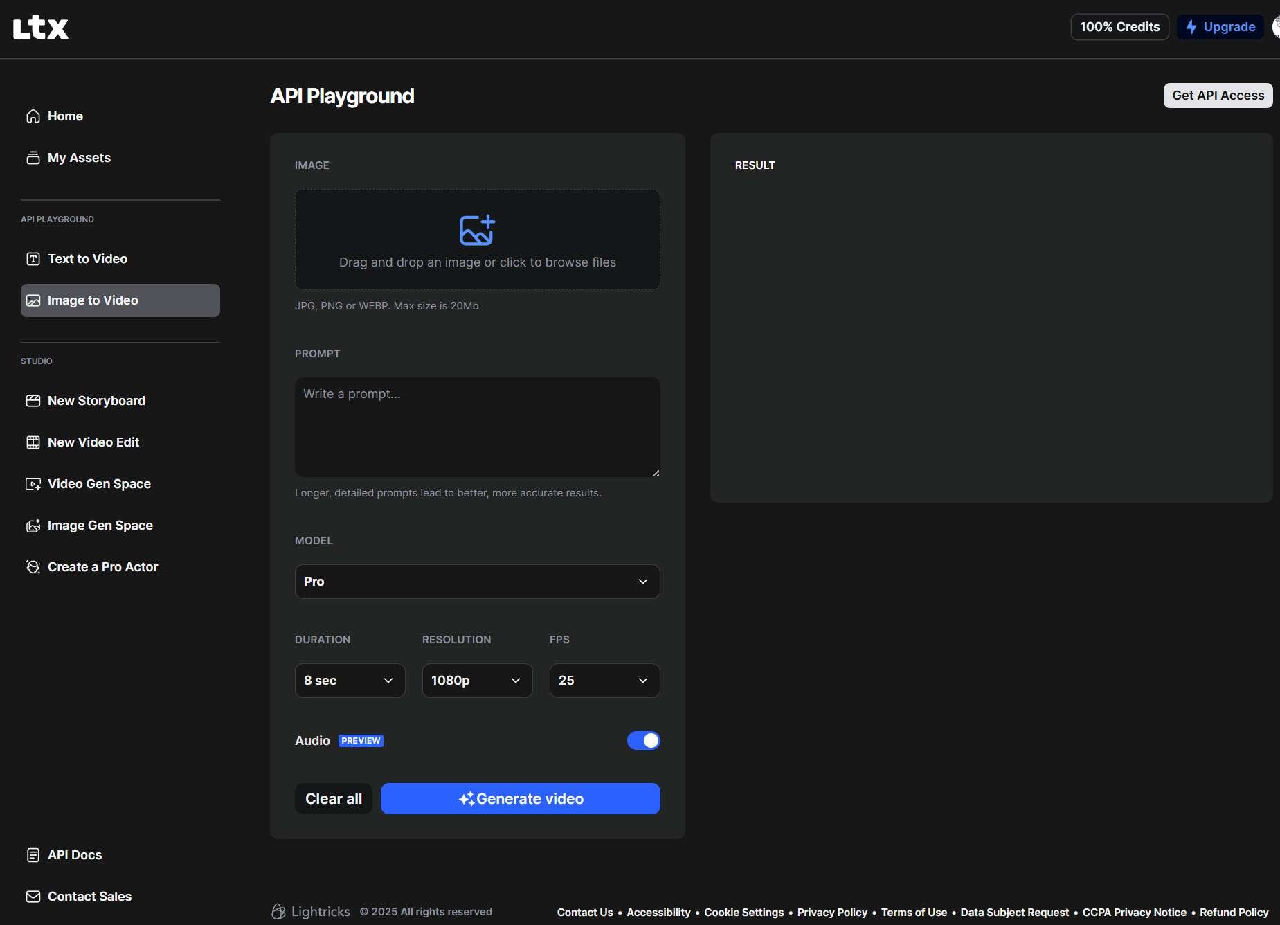 ■LTX Studio API Playground(Text to Video、Image to Video)