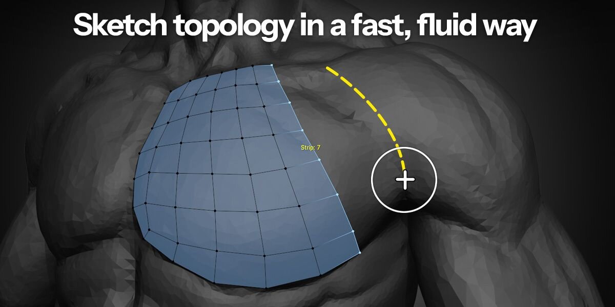 Strokesはループの延長や、2本のストローク間に対してグリッド状のポリゴンを自動生成するツール。